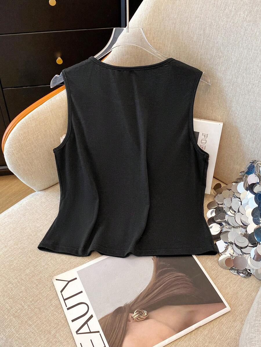 جمبسوت أنيقة للنساء بلون صلب بدون أكمام