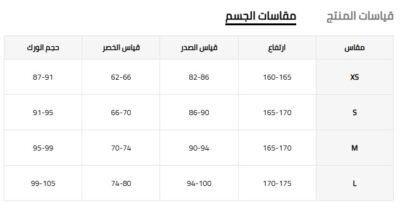 | تكوين | 95% بوليستر, 5% إيلاستين |