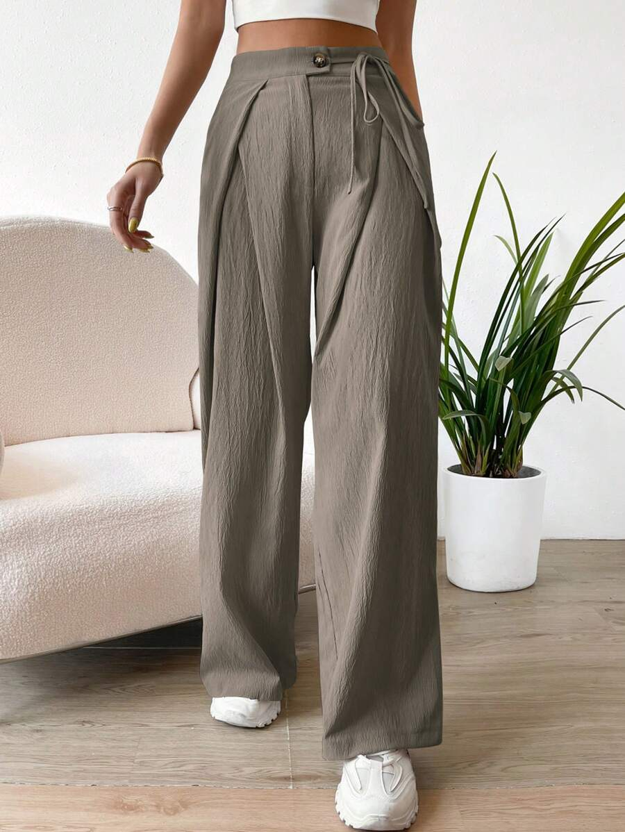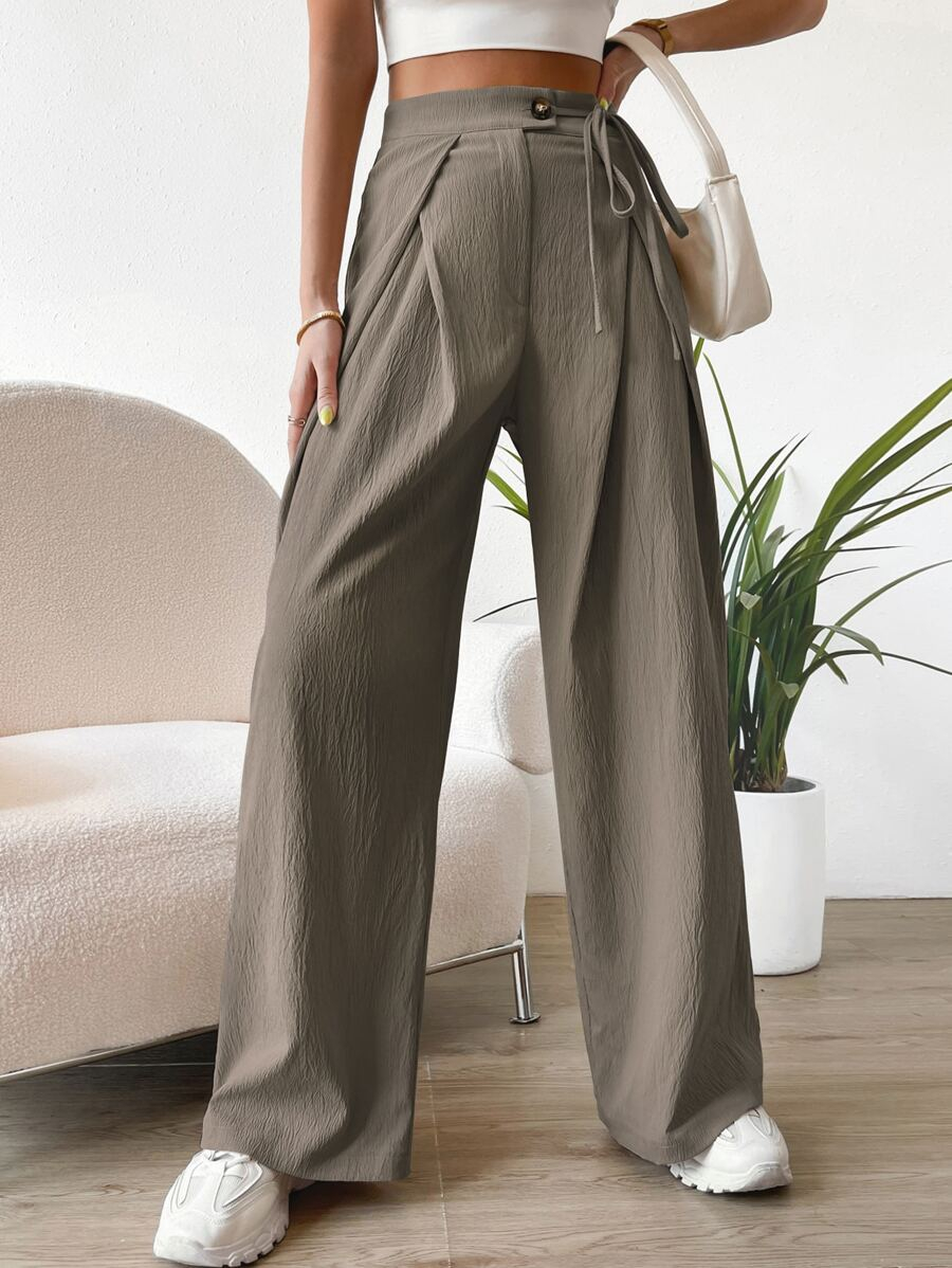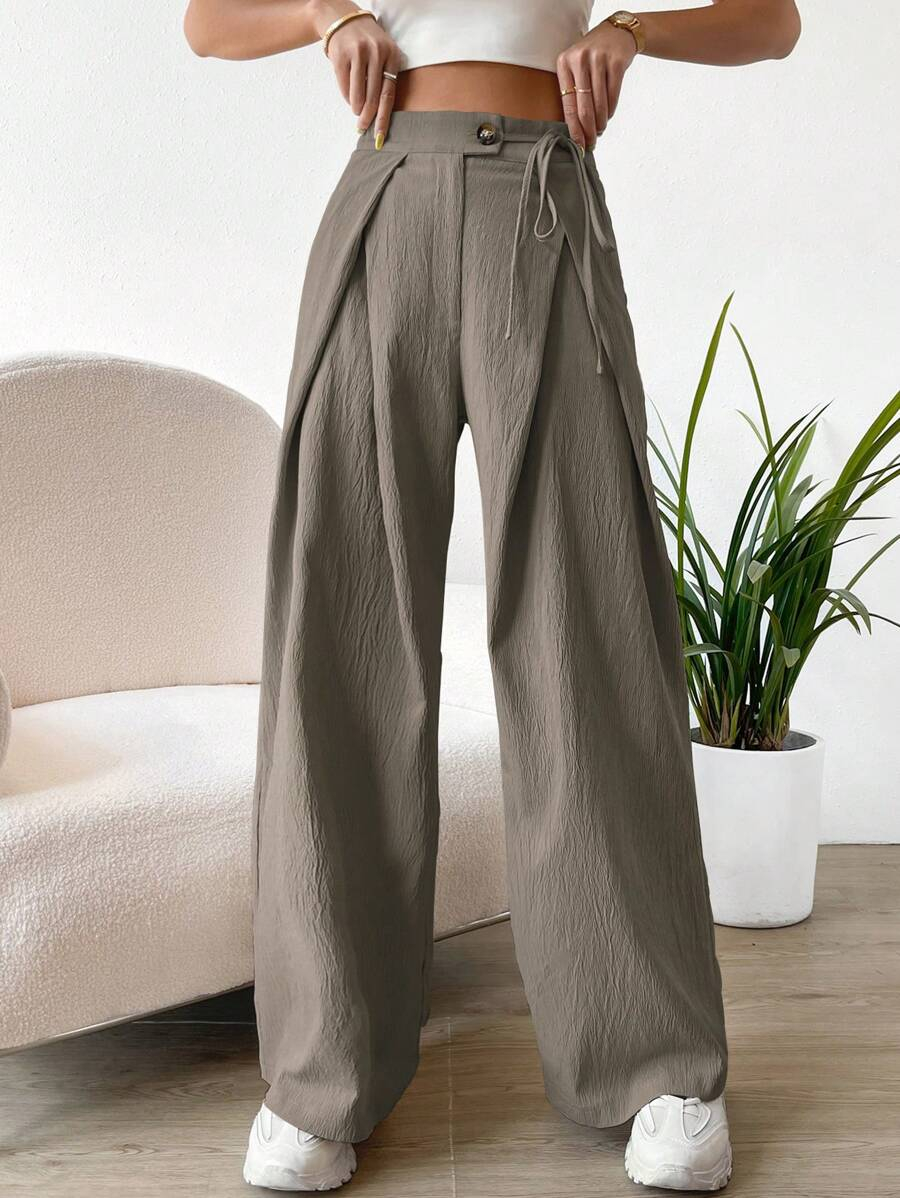 بنطلون ذو خصر عالي مزخرف بالطيات