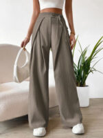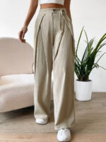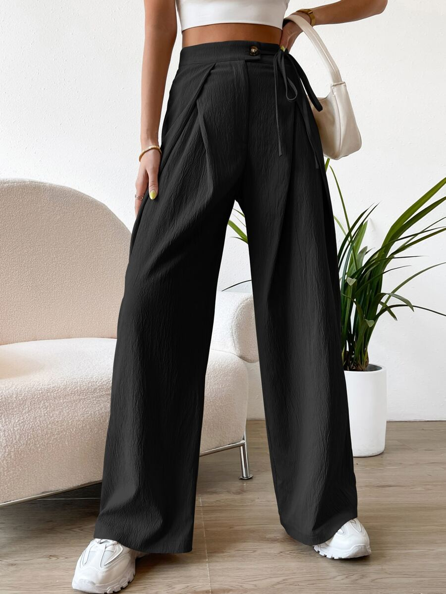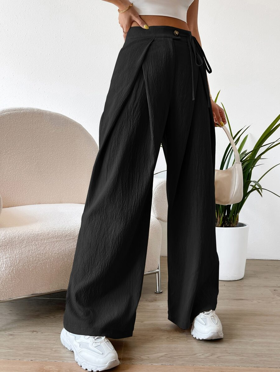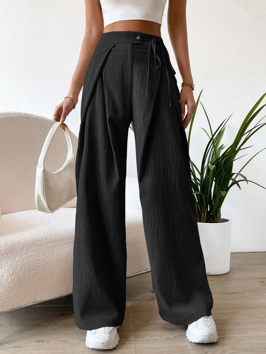 بنطلون ذو خصر عالي مزخرف بالطيات