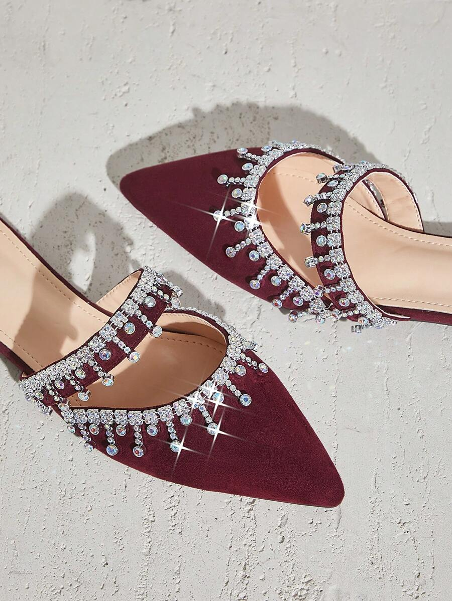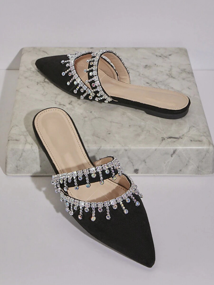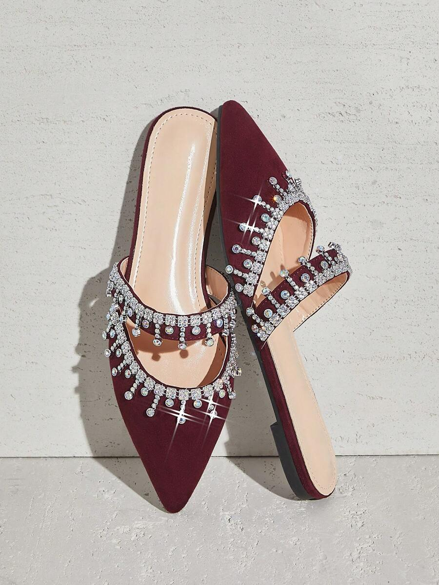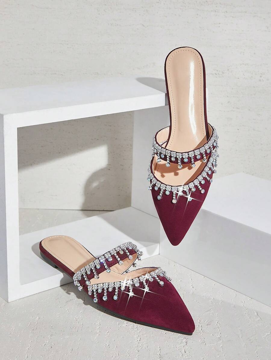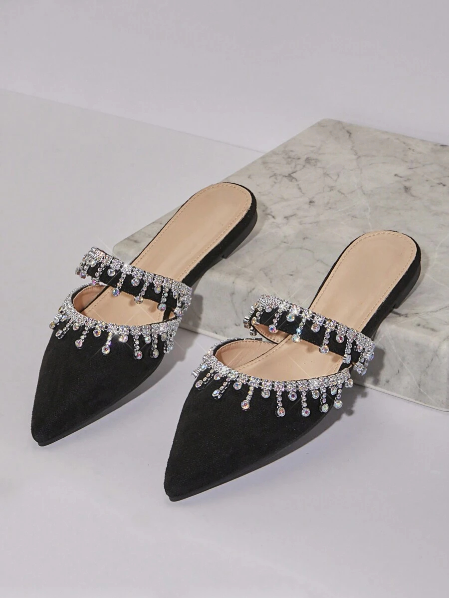 أحذية النسائية بتصميم مدبب ومزينة بالراين