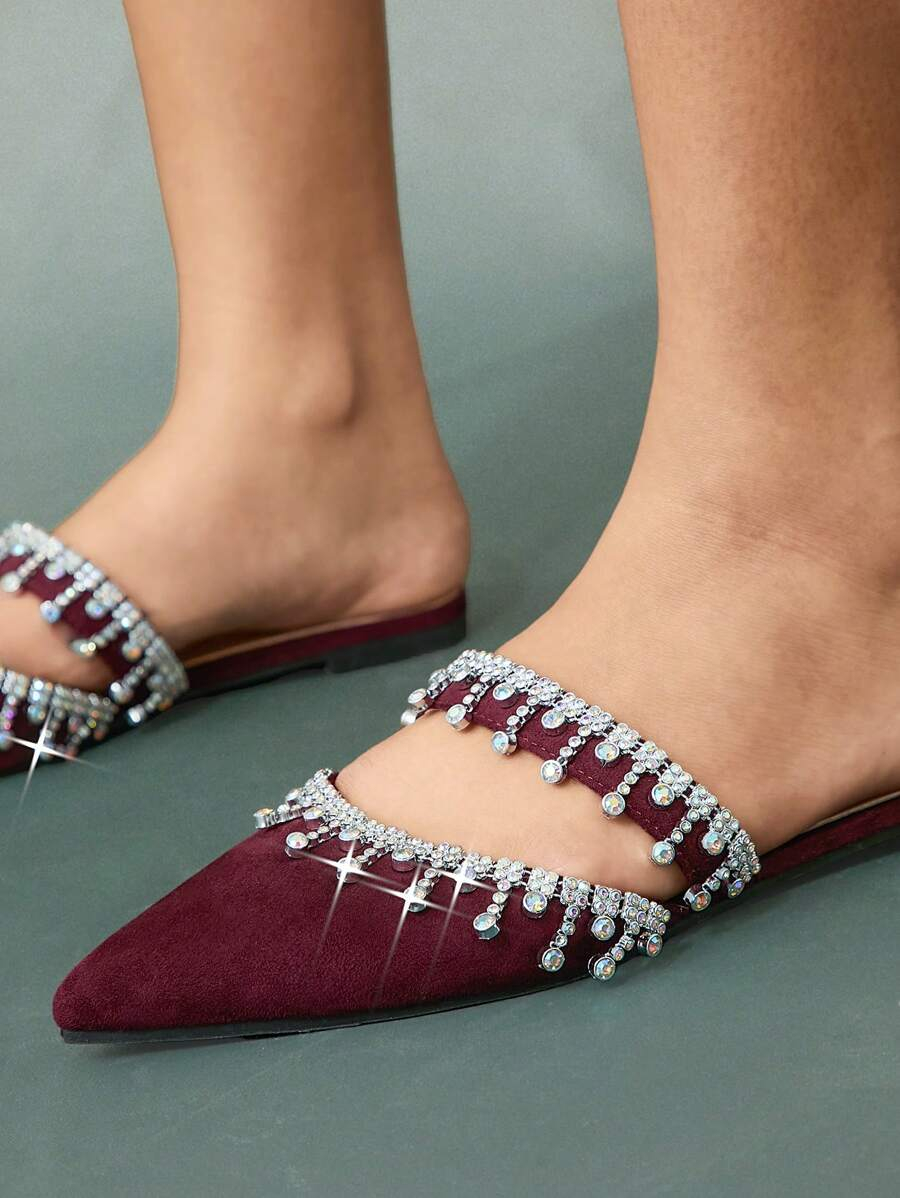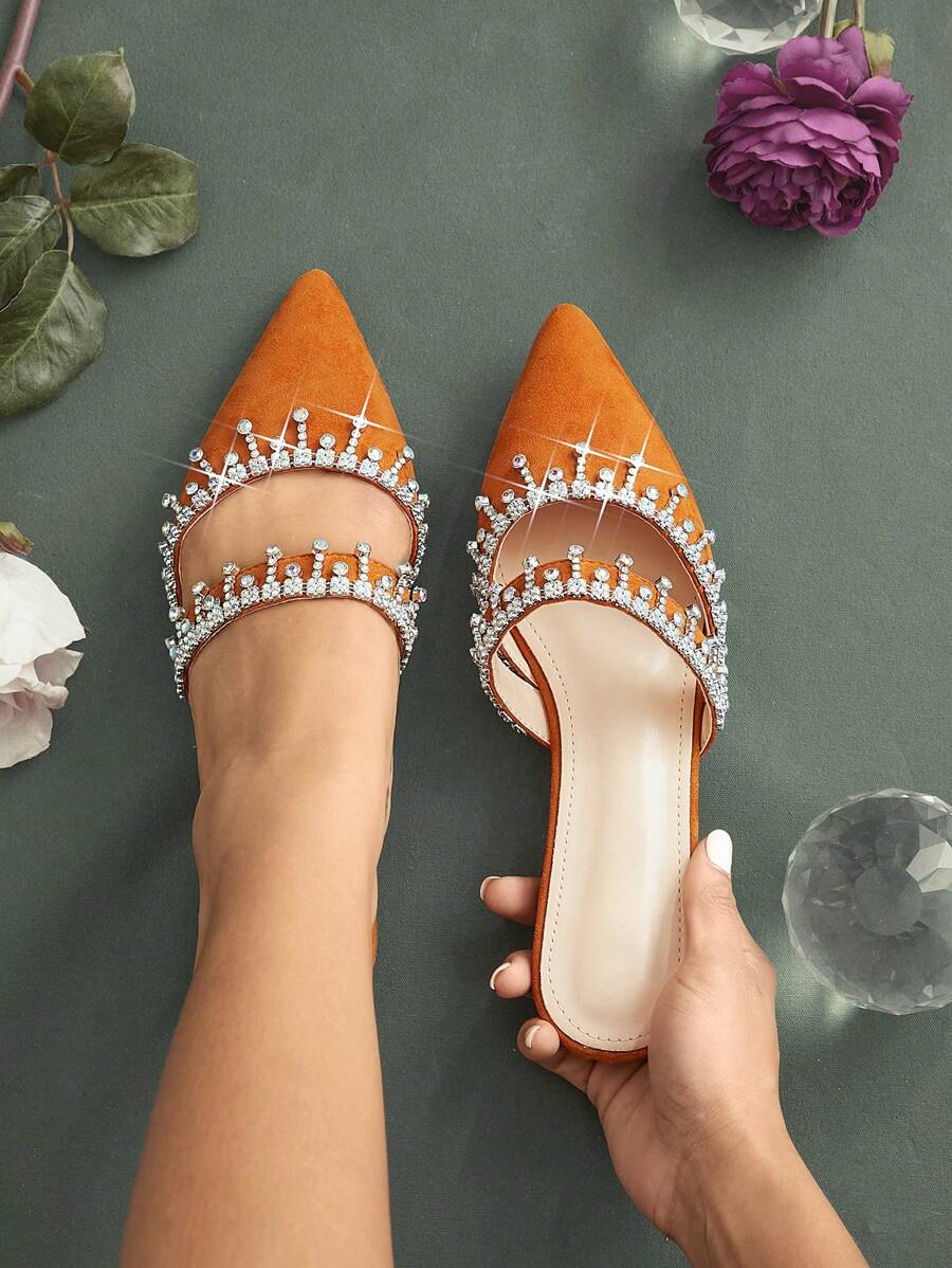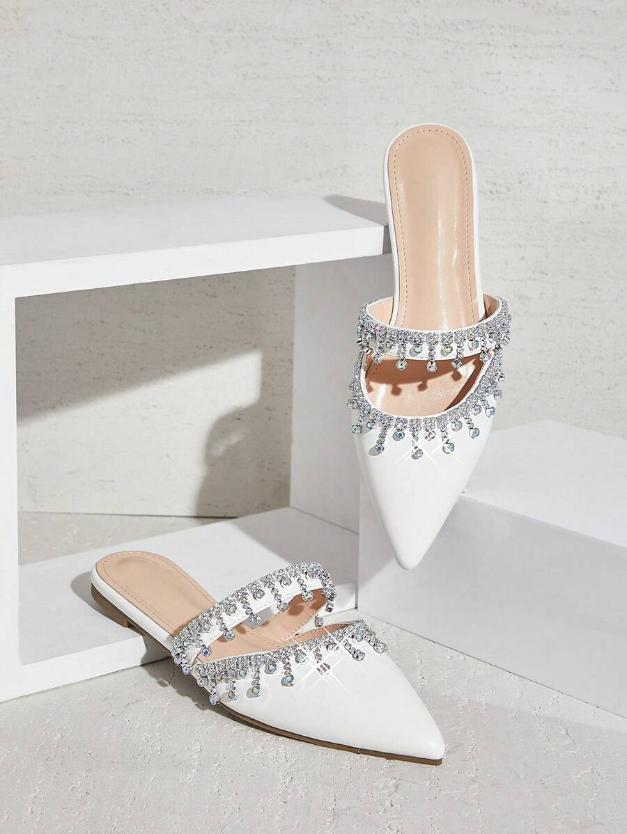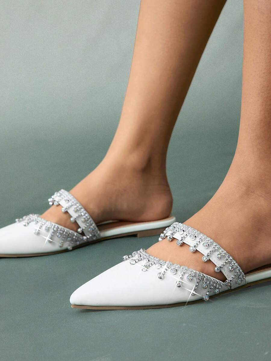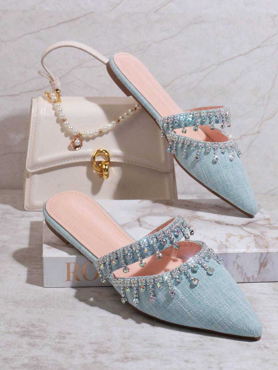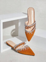 أحذية النسائية بتصميم مدبب ومزينة بالراين