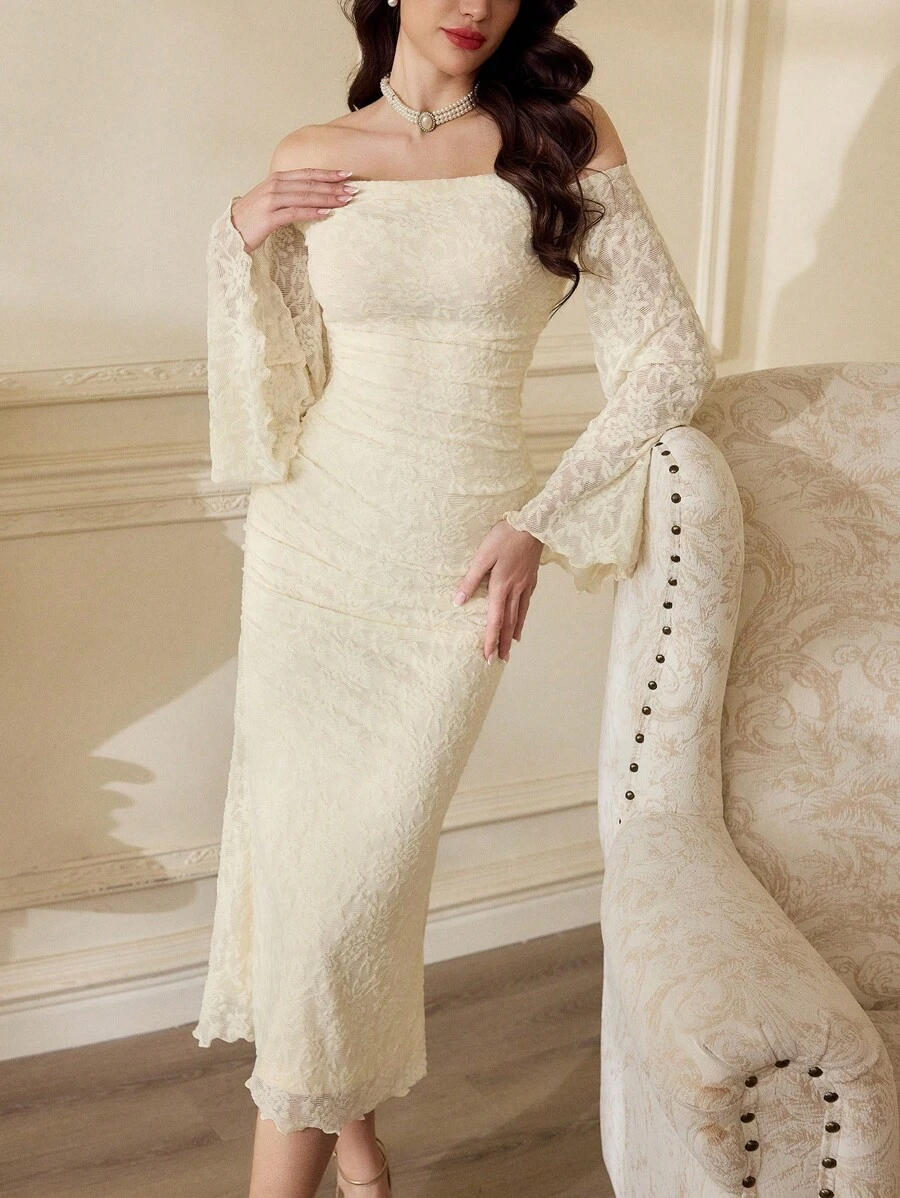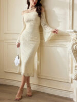 فستان أنيق منسوج بطراز جاكارد دانتيل